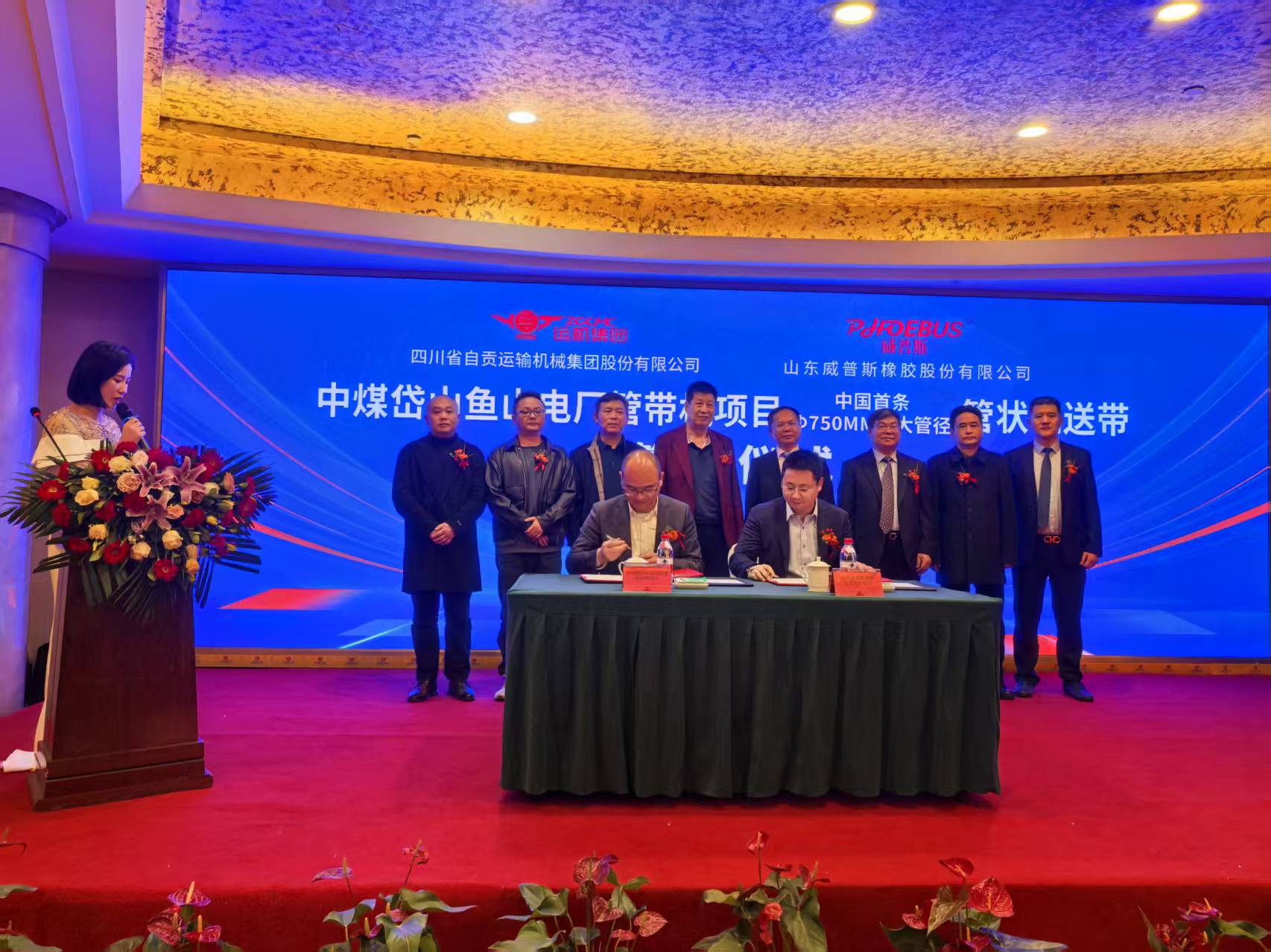 On March 21st, Yunji Group and Shandong Vips Rubber Co., Ltd. signed the "Special Cooperation Agreement on China's First φ750MM Ultra-Large Diameter Pipe Conveyor Belt" in Zigong City, Sichuan Province.